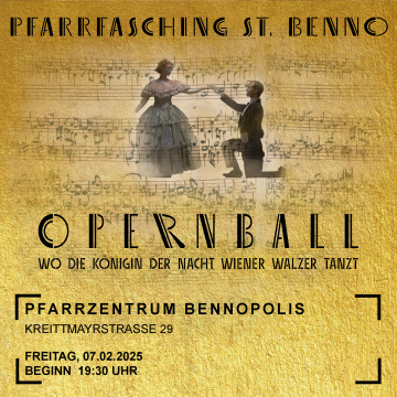Elegant wird es beim Pfarrfasching der Pfarrei St. Benno werden. Denn der Pfarrgemeinderat lädt in diesem Jahr alle tanzbegeisterten Faschingsfreunde ein zum „Opernball“ in den Saal des Pfarrzentrums Bennopolis. Für die Unterhaltung während des Abends sorgen das „Duo Black & White“ und die Showtanzgruppe „No Limits“ der Heimatgilde Fürstenfeldbruck.