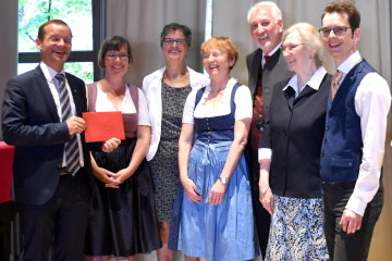 Was folgte, war ein gut zweistündiges, buntes Programm von den obligatorischen Glückwünschen der Gruppen und Verbände der Pfarrei und auch aus St. Benno Meißen – Markus Banowski war extra angereist –, über die Diashows der Ministranten und von Monika Prestel und Martina Mittermeier, die mit vielen Anekdoten auf seinen priesterlichen Lebensweg zurückblickten, bis zu den gesanglichen Grüßen der Kinder des Kindergarten und Hort und den von Anton und Julia Wiener gesungenen Gstanzeln.