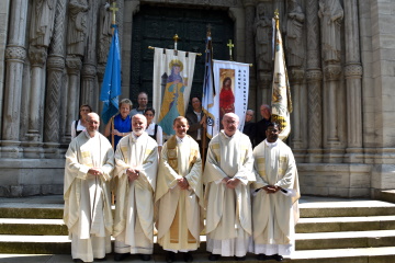 Die erste Überraschung erwartete ihn schon in der Sakristei: Sr. Sara war extra aus Straßburg gekommen. Und dazu noch die priesterlichen Weggefährten, die ihn von seiner Heimatpfarrei in Freising bis heute begleitet haben. Am Hauptportal der Bennokirche warteten dann auch schon die Fahnenabordnungen der Verbände und einige Kinder aus dem Kindergarten und Hort zum großen Einzug. Im Altarraum war gar nicht genug Platz für alle.