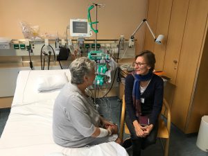 Klinikseelsorgerin Sabine Dillitzer im Gespräch mit einer Patientin.